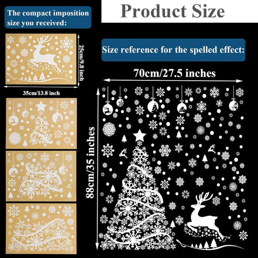 1SET Christmas Tree Window Clings White Reindeer Snowflake Xmas Window Decorations Sticker Reusab...