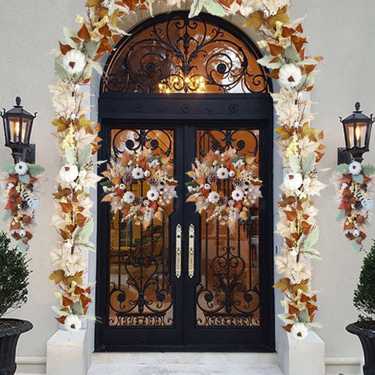 1pcs Autumn Maples Leaf Pumpkin Berry Garland Fall Mantle Fireplace Thanksgiving Halloween Christ...