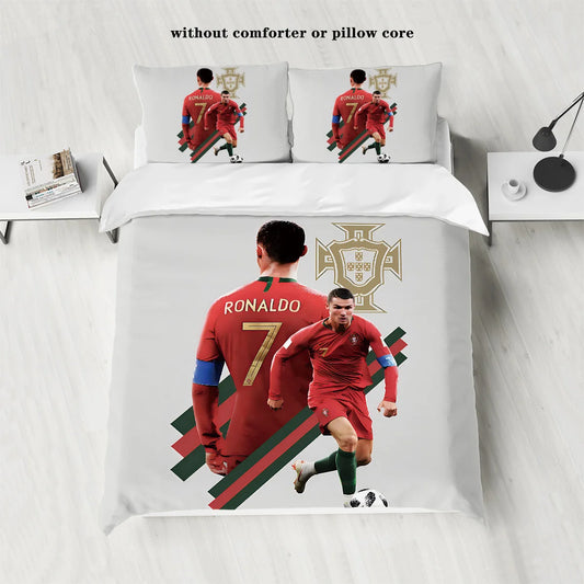 3Pcs Soccer Star Bedding Set with Stitching Print for Bedroom and Guest Room -1 Duvet Cover and 2...