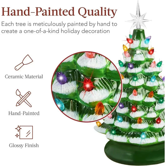 Christmas Tree 15in Ceramic Pre-lit Hand-Painted Tabletop Holiday Tree, 2 Star Toppers, 64 Light...