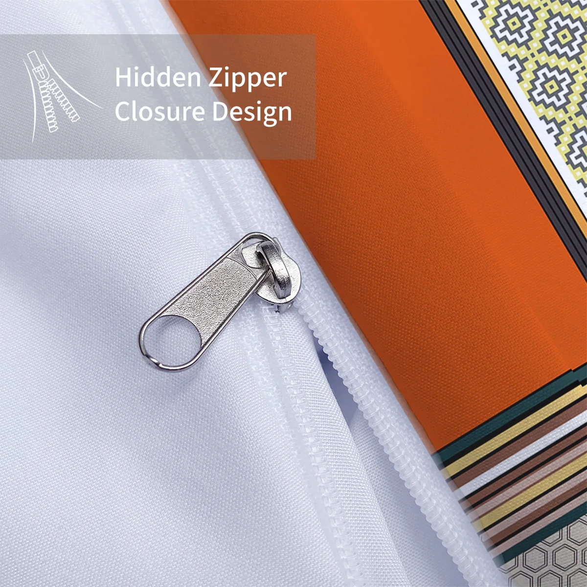3Pcs Luxury Orange Stitching Digital Printing, Skin-Friendly, Breathable, 1 Quilt Cover + 2 Pillowcases Unfilled Bedding Set